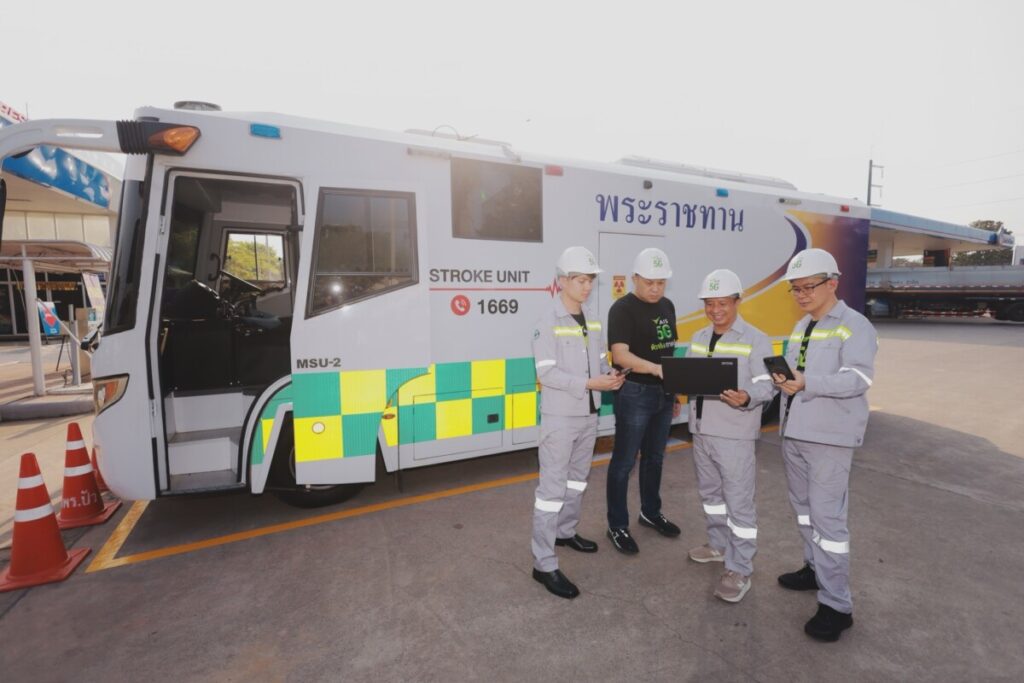 นายวรุณเทพ วัชราภรณ์ หัวหน้าฝ่ายงานธุรกิจสัมพันธ์ AIS เปิดเผยว่า บริษัทมีความมุ่งมั่นที่จะนำศักยภาพของเทคโนโลยี 5G มาเสริมการทำงานของบุคลากรทางการแพทย์ให้มีประสิทธิภาพยิ่งขึ้น โครงการรถรักษาอัมพาตเคลื่อนที่หรือ Mobile Stroke Unit-Stroke One Stop (MSU-SOS) ที่เริ่มต้นตั้งแต่ปี 2561 เป็นตัวอย่างสำคัญที่ช่วยลดข้อจำกัดในการเข้าถึงบริการทางการแพทย์ โดยเฉพาะในพื้นที่ห่างไกล รถ MSU-SOS นี้เปรียบเสมือนโรงพยาบาลเคลื่อนที่ ที่สามารถแสดงผลการสแกน CT Scan ของสมองและส่งข้อมูลแบบเรียลไทม์ผ่านเครือข่าย 5G ทำให้แพทย์ผู้เชี่ยวชาญสามารถวินิจฉัยและให้คำแนะนำในการรักษาได้อย่างรวดเร็ว