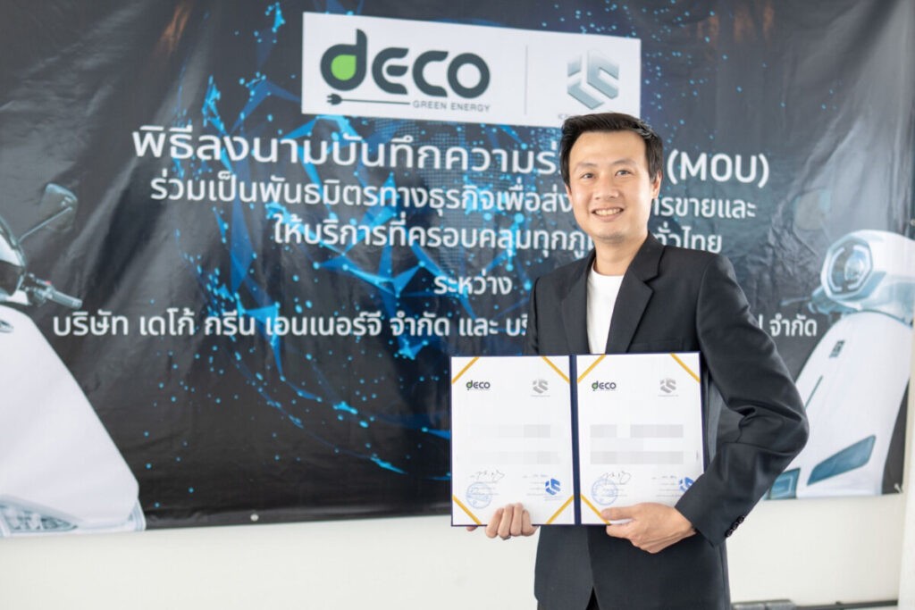 “เดโก้ กรีน” เอนเนอร์จี เดินหน้าผนึกความร่วมมือ ไอซี เอนเนอร์จี กรุ๊ป ลงนามข้อตกลงความร่วมมือ (MOU) การเป็นศูนย์กระจายสินค้าและให้บริการหลังการขาย โดยตั้งเป้าส่งมอบรถจักยานยนต์ไฟฟ้าเดโก้และเพิ่มความสะดวกสบายในการบริการลูกค้าให้ครอบคลุมทั่วไทย ด้วยจุดแข็งของเดโก้ในฐานะผู้ผลิตมอเตอร์ไซค์ไฟฟ้าไร้มลพิษ อันดับ1ของไทยและประสบการณ์ในอุตสาหกรรมยานยนต์ของ ไอซี เอนเนอร์จี กรุ๊ป ที่มีสาขาและศูนย์บริการทั่วประเทศ15สาขานี่คือก้าวสำคัญของการขยายฐานตลาดจักรยานยนต์ไฟฟ้าในไทย