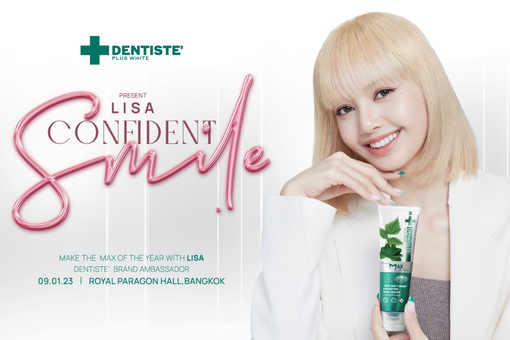 เดนทิสเต้ แบรนด์ผลิตภัณฑ์ดูแลช่องปากพรีเมียมระดับโลก เตรียมเปิดปี 2023 อย่างยิ่งใหญ่ ประกาศจัดงาน ‘LISA’ Special Greet: “DENTISTE’ Presents Confident Smile with Lisa” เอ็กซ์คลูซีฟอีเวนต์ครั้งยิ่งใหญ่แห่งปี สร้างรอยยิ้มมั่นใจ พบกับ ลิซ่า ลลิษา มโนบาล แบรนด์แอมบาสเดอร์ของเดนทิสเต้ ประเทศไทย ศิลปินระดับโลกที่มีฟันขาว ยิ้มสวย 100% เอาใจชาวบลิ๊งค์ (Blinks) และลูกค้าเดนทิสเต้โดยเฉพาะ ซึ่งจะมีขึ้นในวันที่ 9 มกราคม 2023 ณ รอยัลพารากอน ฮอลล์ สยาม พารากอน