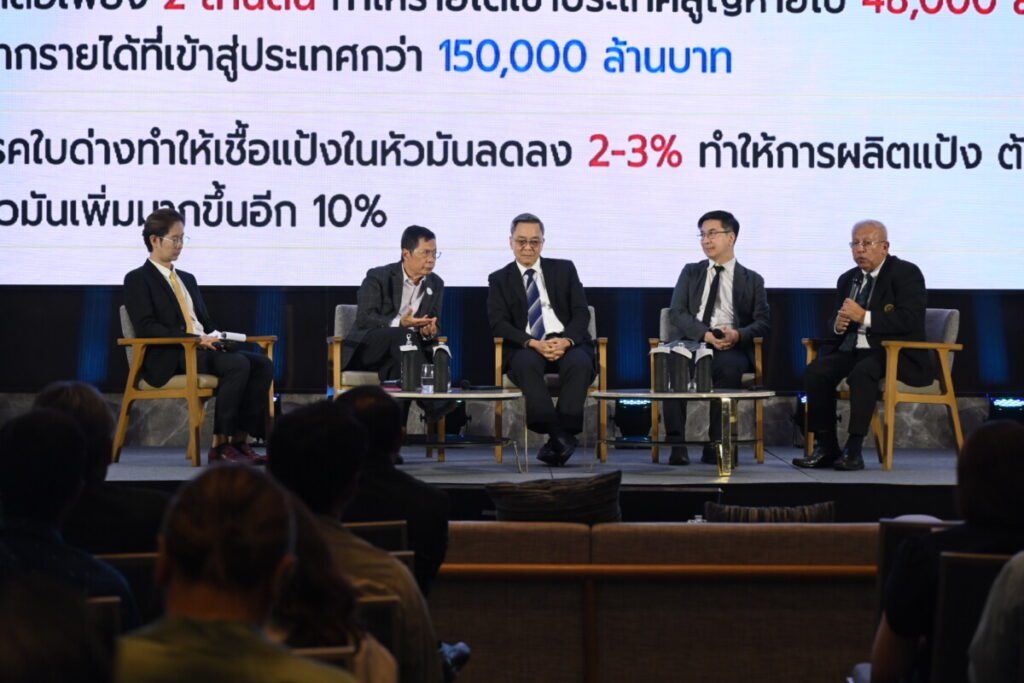 สมาคมการค้ามันสำปะหลังไทย ร่วมกับสมาคมโรงงานผลิตภัณฑ์มันสำปะหลังไทย, สมาคมแป้งมันสำปะหลังไทย และสมาคมโรงงานผู้ผลิตมันสำปะหลังภาคตะวันออกเฉียงเหนือ จัดงานสัมมนาครั้งสำคัญภายใต้หัวข้อ “มหันตภัยโรคใบด่าง วิกฤตมันสำปะหลังไทย…ไม่มีทางรอด” เพื่อระดมความร่วมมือจากทุกภาคส่วนในการหาทางออกและแนวทางในการแก้ไขปัญหาโรคใบด่างมันสำปะหลังที่กำลังระบาดอย่างรุนแรงทั่วประเทศ